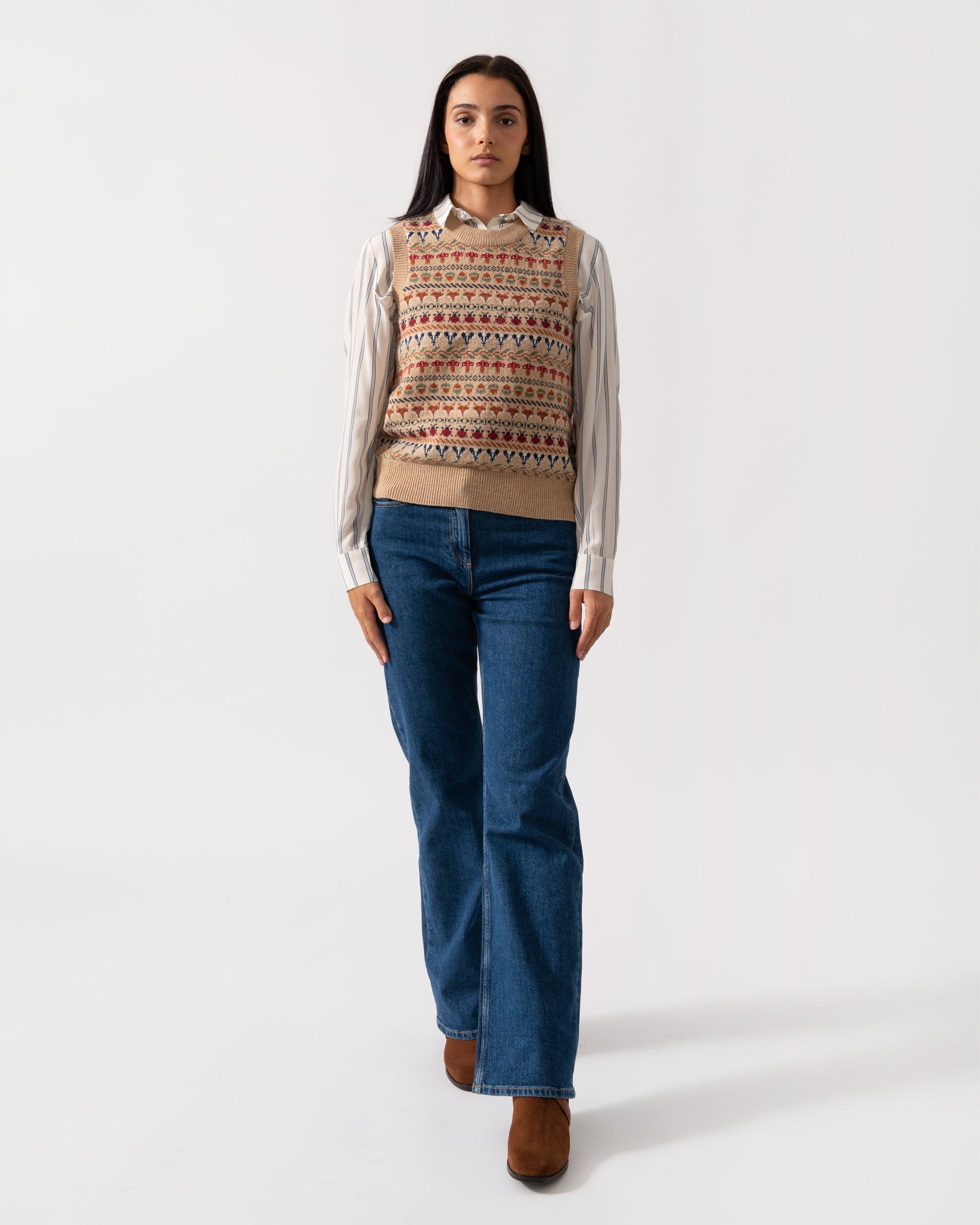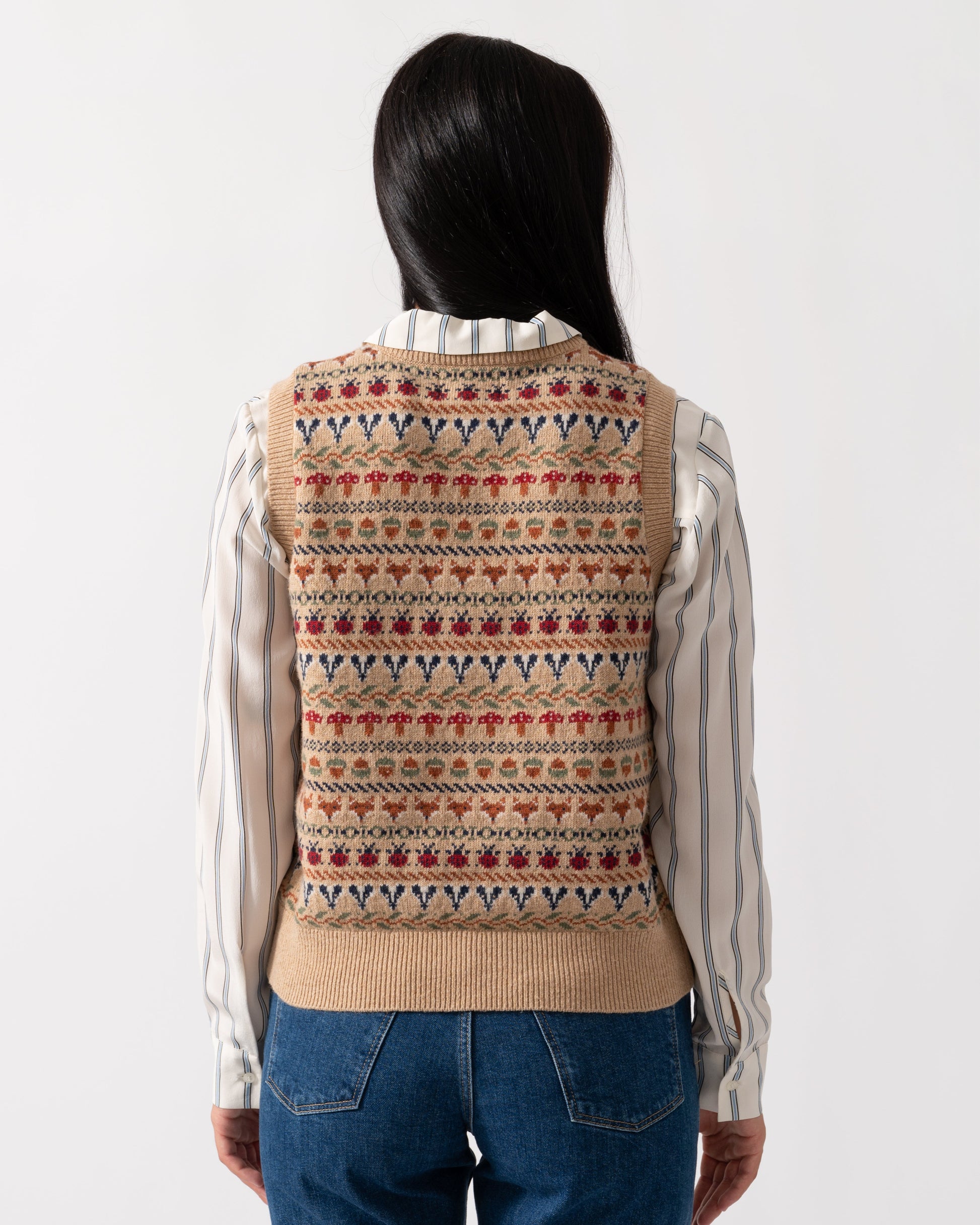 This knitted vest is the perfect layering piece that would look oh-so stylish over a shirt, under a jacket or even by itself. It's crafted from a soft cotton blend featuring an autumnal woodland intarsia design that really sets it apart.